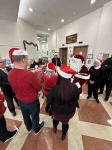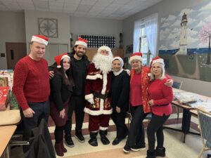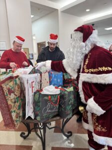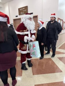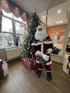Gemmy Toys donated festive and animated toys that played holiday music. Students from PS 6 in Tottenville created holiday cards. Families in support groups from Celebrate Hope knitted hats and scarves. Home Depot donated the beautiful Christmas Tree in the lobby.